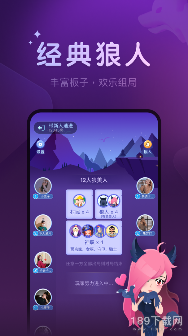6、丰富的狼人社交玩法:6人新手局、9人插麦局、9人标准局、10人上警局...随时随地想开就开,一人在家也能玩