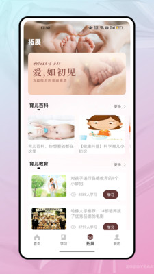 4、探索拓展板块,阅读育儿百科,了解儿童心理与成长规律,为孩子的全面发展提供有力支持。