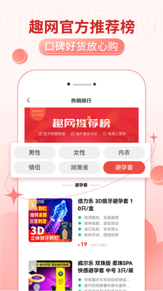 分类浏览:APP提供了商品分类功能,用户可以根据商品类型(如男女服饰、情趣用品等)进行筛选和浏览。