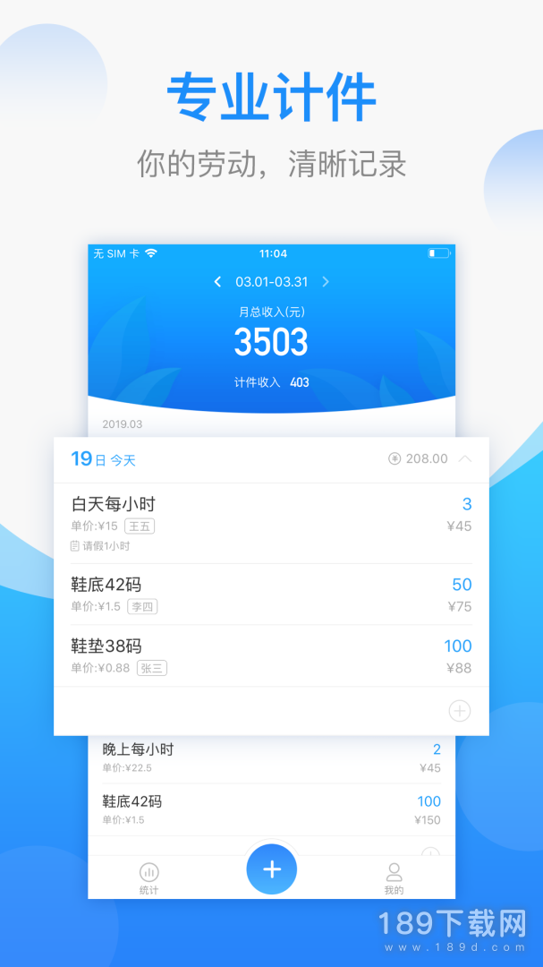 2、创新地使用卡片形式排列展示工序种类,一次记录、核对多件产品。工作内容清晰简洁的展示,方便编辑及更新。为广大在服装鞋帽厂、箱包厂、纺织厂、家具厂、五金厂、电子厂等等工作的计件工资蓝领们提供专业便捷的记账软件,不管你是兼职临时工还是缝纫工、快递员、车床工、木工各种工序复杂的计件工,都不用再担心找不到纸笔记录自己每天劳动的件数和收入,随时随地都可以记录。