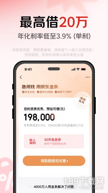 《京东金融》是京东数字科技集团下个人金融业务品牌,京东以平台化、智能化、内容化为核心能力,与银行、保险公司、基金公司等近于千家金融机构,共同为用户提供专业,安全的个人金融服务。欢迎大家在189下载京东金融