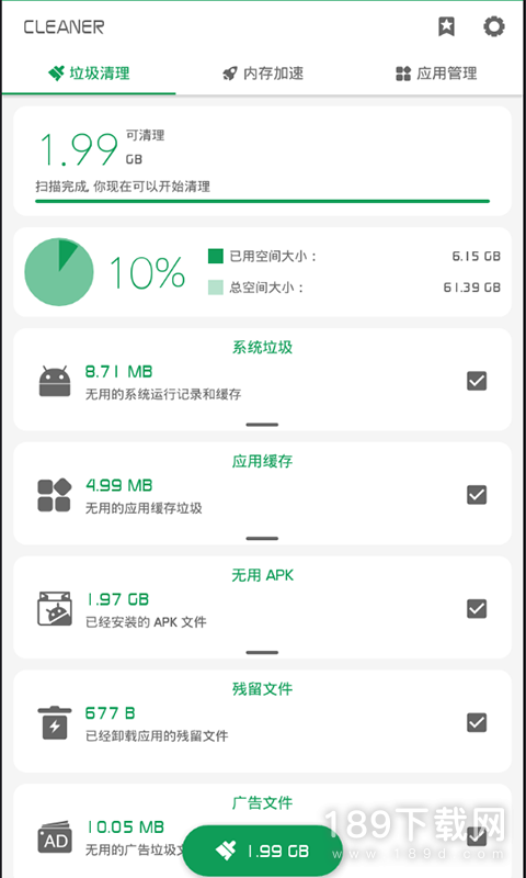 《强力清理中文版》是189d小编特意给大家推荐的一款app,这款app最近非常火爆,很多小伙伴 都在使用呢,相信追求时尚的你一定不会错过。手机卡慢,用强力清理,4亿人使用的清理软件!快来189d下载来深入体验这 款app吧!