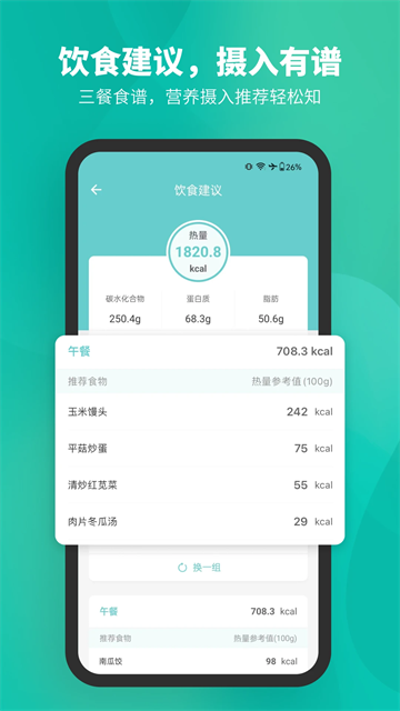 2、然后就会根据用户的体脂情况,为您提供定制化饮食方案。