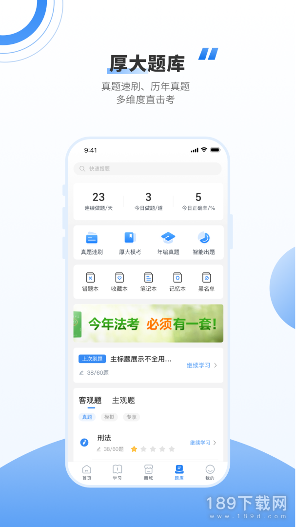 4、配套练习,海量试题等你来刷。为了让学子们可以更加精确地掌握法律知识