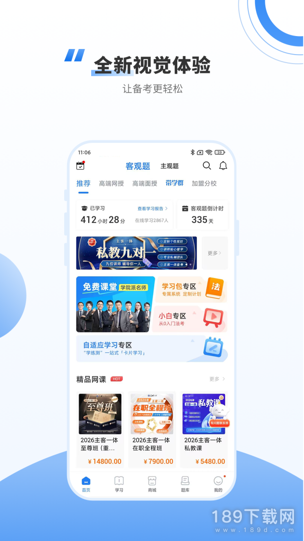 1.免费课件:主客观免费课件按阶段系统教学,离线下载随时随地观看视频。