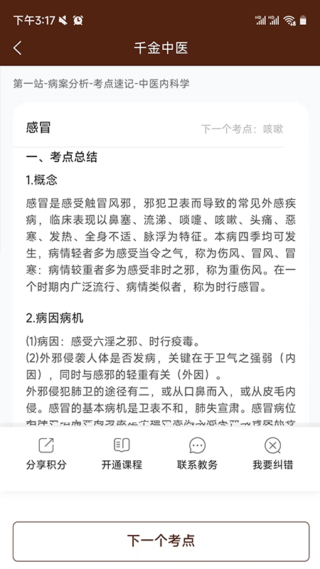 3、进入"考点速记"栏目即可开始系统学习中医基础理论和临床要点知识。