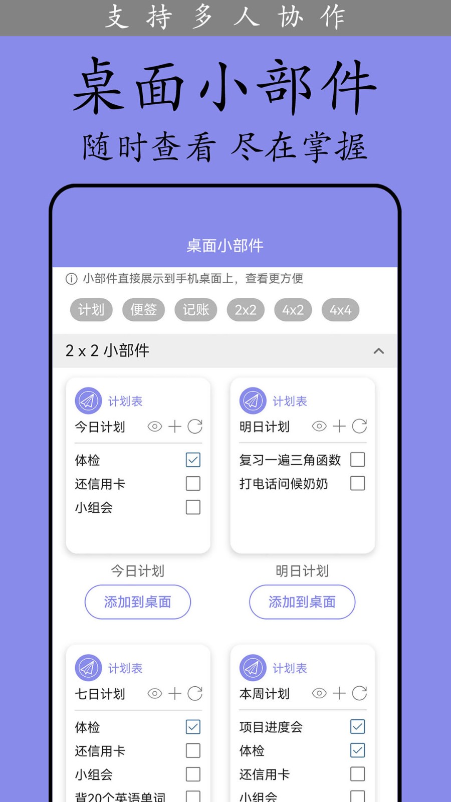 4、任务计划共享协作:与家人、好友和同事共享任务清单,多人协同完成任务日程安排,更能监督您的任务执行或习惯打卡情况。