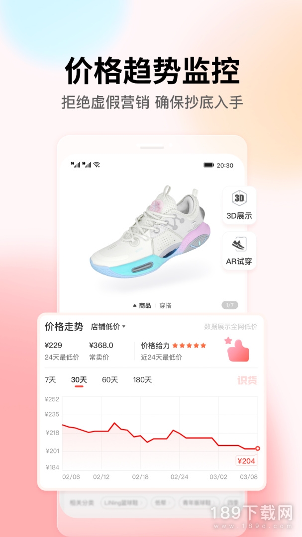 《识货》是虎扑体育旗下最大的一款导购网站,致力于为广大年轻用户提供专业的网购决策指导,为新一代的的年轻人带来最及时最劲爆的运动,潮流,时尚,生活资讯。欢迎大家在189下载网下载识货