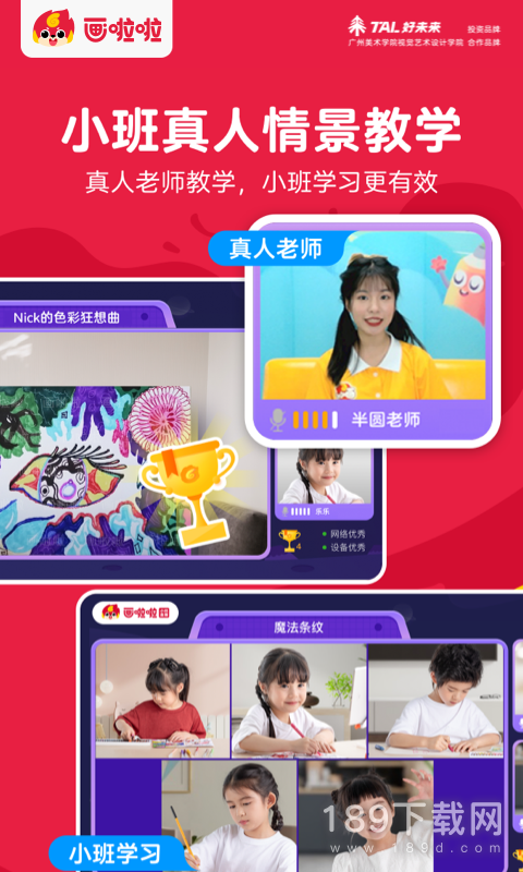 4、画啦啦美术课堂是由广州六一信息科技有限公司特别打造设计的教育学习类应用平台,一个采用了非常先进的现代少儿美术教学方法,全面培养孩子的想象能力和创造能力的手机app,希望可以帮助到你呦