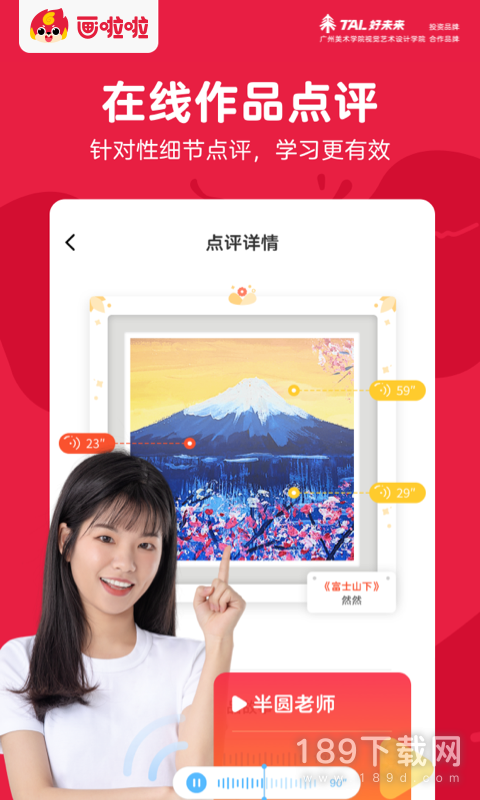 2、画啦啦美术课堂是一款关于绘画的教育平台,让大家在线上就可以进行美术的练习,老师还可以为学生的练习提出评价和建议。在家里学习也不用担心了,减轻家长辅导压力,学习也会更加的方便。让用户实时就可以得到更多的学习内容,帮助孩子便捷提升美术绘画能力,有需要的用户千万不要错过了
