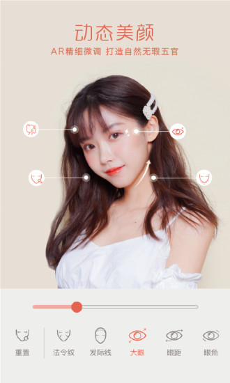 视频磨皮算什么美颜,要的是硬币眼、细高鼻、巴掌脸、大白牙!多种实时动态美颜功能,细致调整五官,边拍边美,给你照镜子般的惊艳体验。