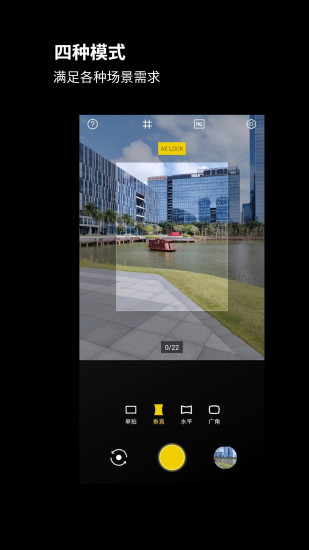 4、广角相机这款软件可以支持用户拍摄全景照片,轻松获得720°交互式全景,用户提供多种角度的观看模式,软件支持用户将不同的几张照片全部拼合在一起,功能齐全,非常简单,轻松容易上手