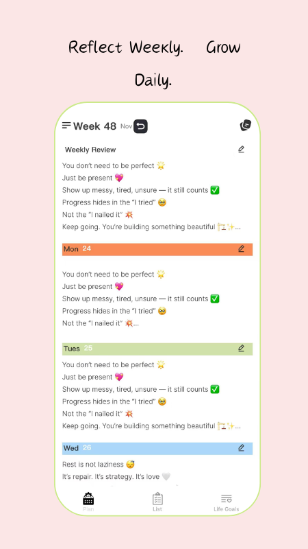 5、没有续打卡机制,,允许偶尔的懈怠与暂停,不生成“落后”警示,以温和态度支持习惯养成。