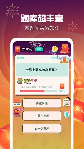 题目难度不是特别高,但是答题节奏快,限时答题,答对有红包领。