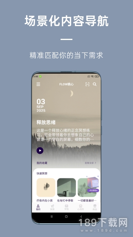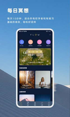 2、每日冥想释放压力,放松身心,软件中提供了自然、助眠,放松轻音乐,让你放松身体,沉静于此;flow冥想给你带来减压服务,缓解压力,放松自己的大脑