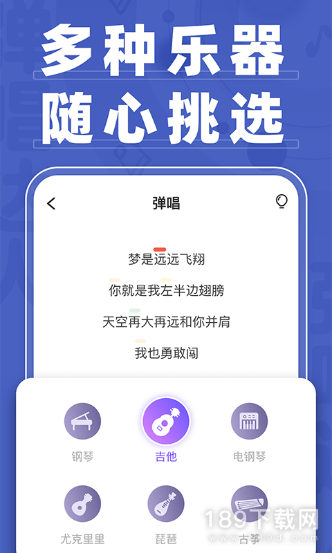 1、弹唱达人是一款非常好玩的弹唱软件,软件提供了丰富的乐器供玩家弹奏,海量的音乐歌单供用户自由选择演唱,用户可以通过软件享受到自弹自唱的乐趣,感兴趣的小伙伴赶快来下载吧