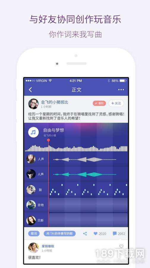 《微唱》有着强大的唱歌功能,高质量的在线KTV体验的工具,给你带来非常专业的唱歌新体验,精彩而丰富的互动,非常有趣的社区玩法,您所要做的就是哼着歌唱,和好朋友一起唱歌,感兴趣的快来下载吧!欢迎大家在189下载网下载微唱