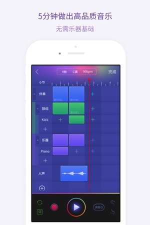- 『为旋律找伴奏』 设定你的原创参数(拍号、调号、速度),筛选出适合的伴奏。