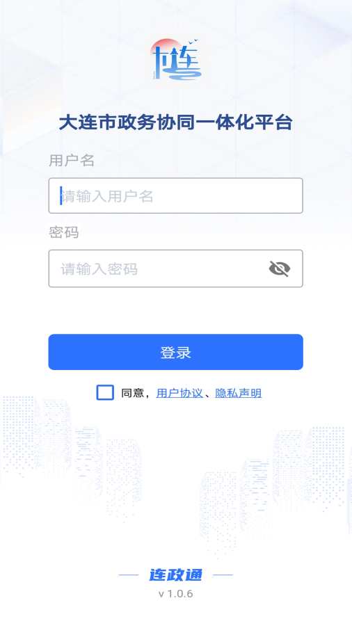 2、输入用户名密码进行登录,勾选同意用户协议与隐私声明按钮。