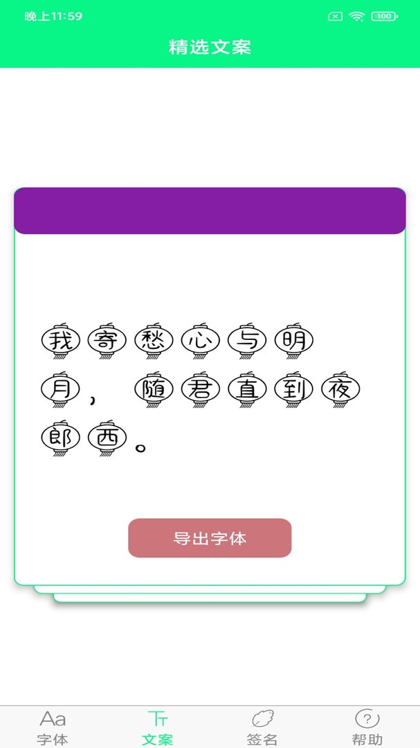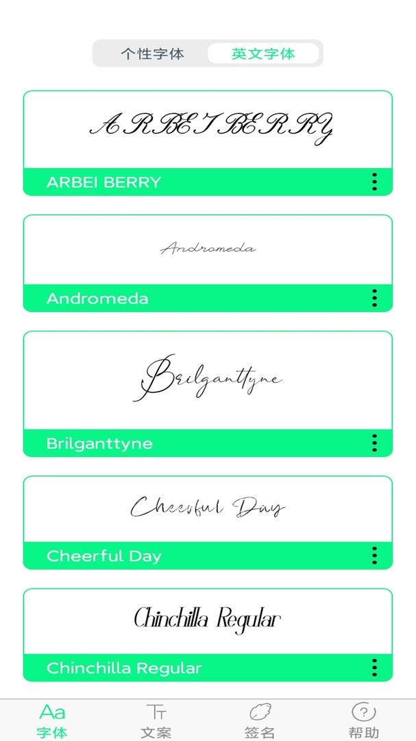 1、海量字体资源:软件内置了丰富的字体库,涵盖各种风格,如简约现代、复古风韵、卡通趣味等,满足不同用户的个性化需求。用户可以根据心情或场合随时切换字体,展现独特品味。