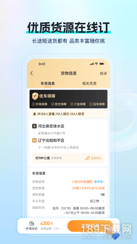 3、在线找货,用户在应用中就能轻松找货,找到货即可提供运输服务