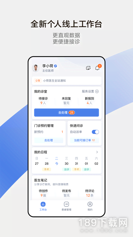1、专为医生打造的一款线上医疗服务软件《小荷医生》,这款软件功能很多,用户可以通过这款软件来线上看诊,开具医疗处方,管理患者的档案信息,还可以与患者沟通,追踪患者病情