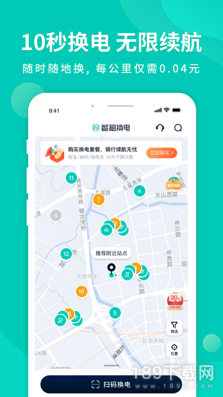 4、智租换电是一款由上海智租物联科技有限公司开发的电动车换电瓶软件,用户可以通过本软件随时随地在附近的站点更换电动车电瓶,再也不用担心电动车没点跑不动了,更换非常方便简单