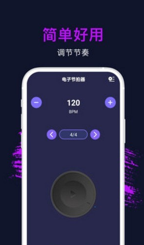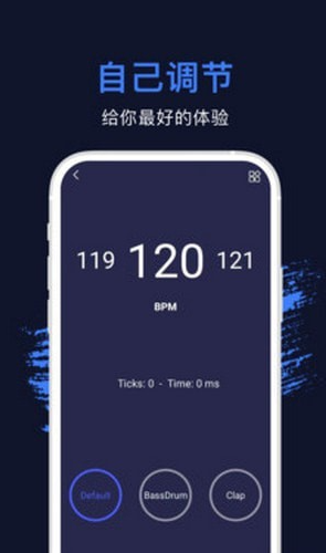 BPM自由调节:支持10-250BPM的宽幅调节范围,满足从慢速练习到高速演奏的多样化需求。用户可通过滑动数值或点击加减按钮快速调整节拍速度,实时观察数字变化。