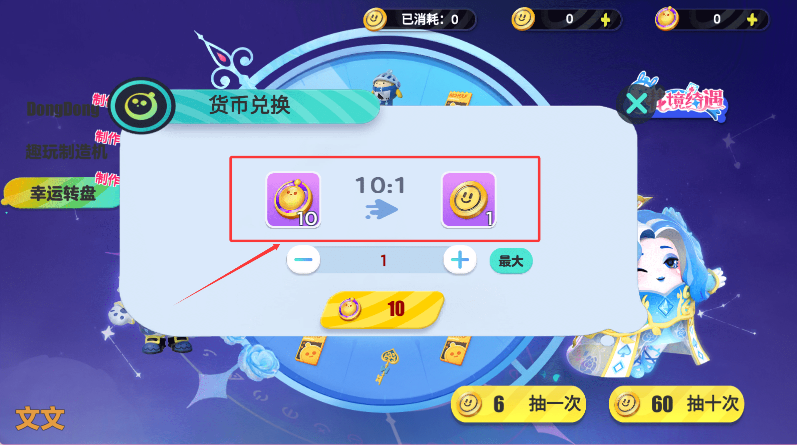 2、操作非常简单,只需要在转盘界面点击抽一次或抽十次按钮即可。
