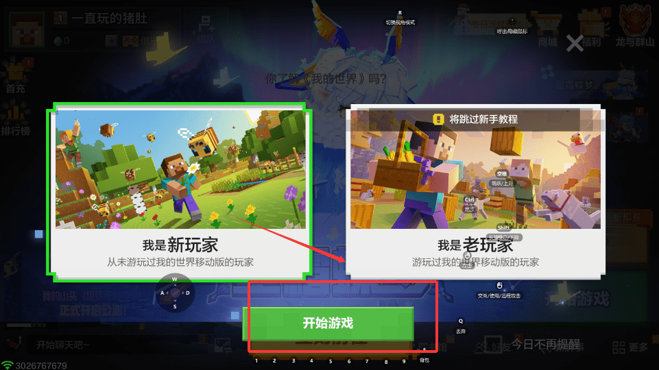 2、若从未玩过就选择我是新玩家,然后点击开始游戏,若想跳过教程也可选择相应选项,老玩家则直接进入即可。