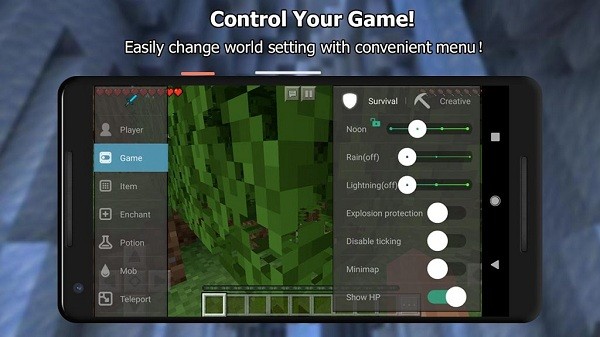 √给自己无限的物品,创建各种小怪如Creeper和Enderman与您抗衡!