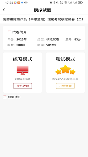 消考宝典app是专注于消防职业技能鉴定考试学习的智能软件;这里提供官方的学习知识,用户可以学习到专业的知识,能够为你的考试奠定更多的知识,考试更加的轻松;提供众多的练习选择,用户可以随意的在平台进行练习,能够及时的巩固自己的学习知识等,练习更加的有效果;还能直接的在平台进行模拟考试,实时的对你的学习进行检验,能够提前的知晓你的学习水平,方便你及时的调整学习的方法等;向用户提供全面的历年真题,可以直接根据年份选择查看真题进行练习,练习真题更加的方便,使用更加的简单。