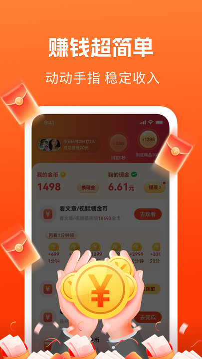 1、用户在阅读指定资讯时,满足条件即可获得红包奖励,实现阅读赚红包。