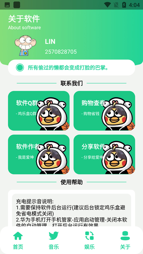 鸡乐盒最新版是一款非常有趣好玩儿的搞怪类手机软件,该软件收录了非常丰富的坤坤语音,像“鸡你太美” "哎呦,你干嘛"等经典,这里统统都有,同时还有各类视频、舞蹈等,堪称是一个可以全方位展示坤坤的原声大碟,你可以将其使用到游戏、聊天等领域。作为一款优质音乐盒子,收录了很多非常恶搞的音乐内容,玩家可以通过它选择铃声作为手机来电铃声,还有大量的恶搞表情包,如果你喜欢恶搞的铃声可以随时进行选择,每种铃声都可为你带了不一样趣味,此外,它还包含了一系列热门梗,如蒸乌鱼、小黑子树枝666、荔枝呢等,用户可以在此感受轻松幽默的网络氛围,分享快乐时刻。应用内的梗语不仅风趣幽默,还极具创意,如油饼食不食、香精煎鱼食不食等,令人捧腹。