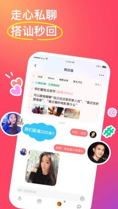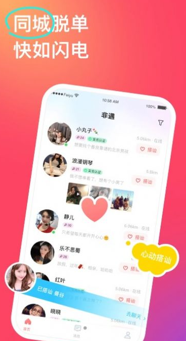 非遇app:及时的在线让你认识不同的人群,了解不同的社交服务在里面,更好的知晓不同的交友服务的便利,而且还可以针对各类不同的聊天互动及时的在线查看,实时知晓不同的同城人群,让你可以快速的找到和自己有共同话题的朋友,享受到最便捷的交友体验!