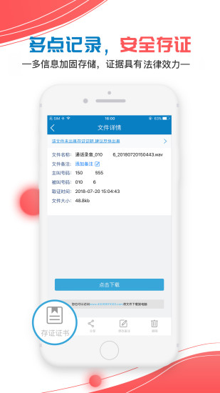 【专业取证】 去电录音、来电录音、网页取证、拍照取证、视频取证等多元化云端专业取证方式。从线上到线下,移动公证一键保全证据!