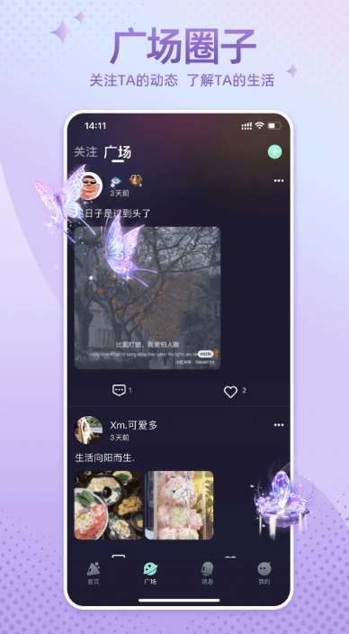 2、动态广场里有更多的网友在这里分享自己的生活与心情;