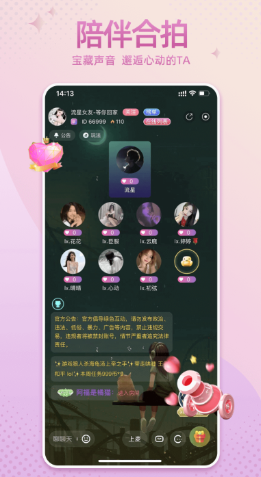 可以免费进入的真人语音交友平台,为我们呈现了超赞服务哦,在这里每一个用户都能匹配到不错的对象,你想和他说啥都是没问题的,对话更为自由,而且不少语音包素材可以下载,丰富我们的交流玩法。