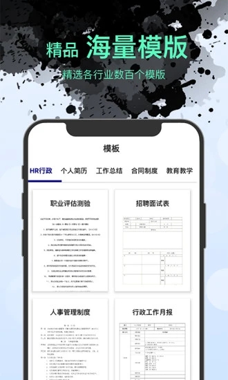 3、这里的模板十分的丰富,覆盖财务、人事、合同、简历等多种内容,可以满足用户的办公需求;