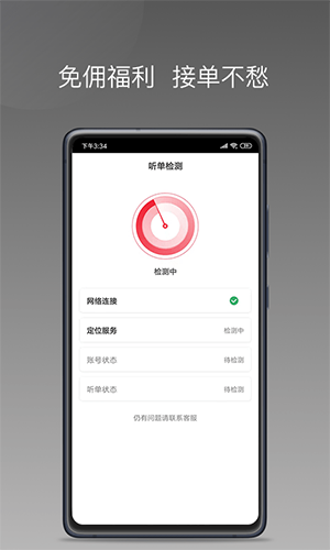 采用智能听单检测技术,司机可以快速完成订单检测,接单更加轻松便捷。