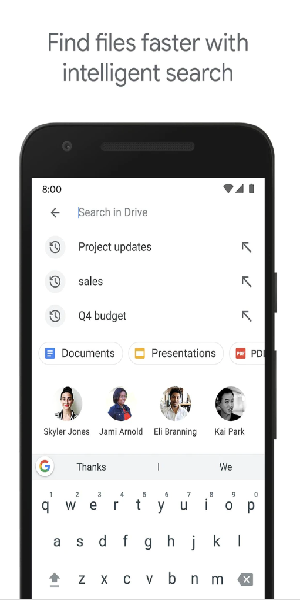 云端硬盘使用 Google 的人工智能 (AI) 技术,实时预测和显示对您而言重要的内容。云端硬盘运用快速访问和基于机器学习技术的增强型搜索等功能,识别重要的内容、协作者和活动,向每位用户显示可能需要关注的文件。