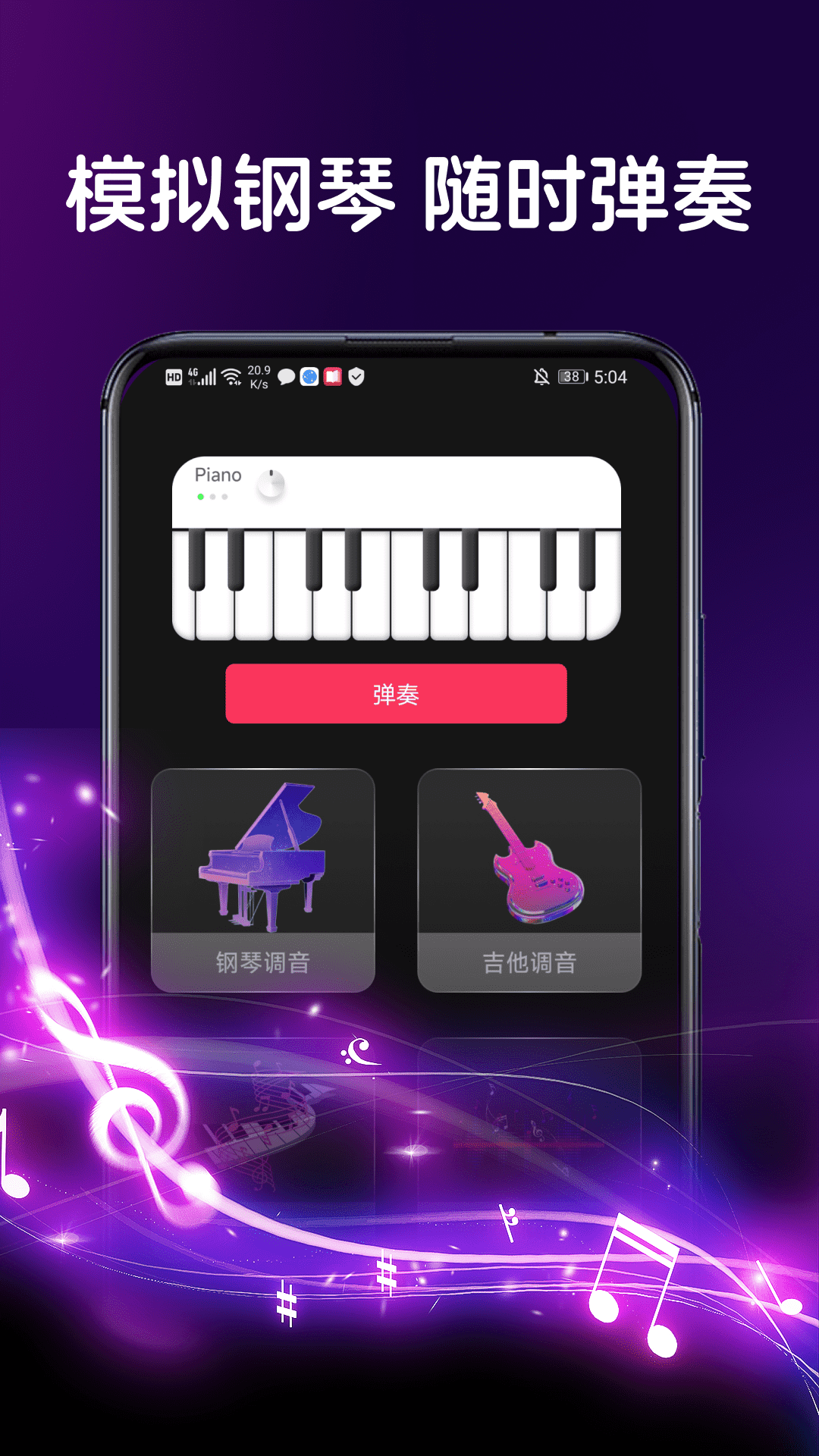 3、使用钢琴调音,提供精准的钢琴调音器功能,帮助用户校准实体钢琴音准,解决音律不准问题。