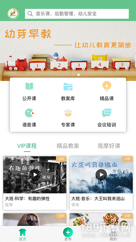 3、幼芽早教APP是一款专业的幼师培训软件,该软件可以帮助用户发布、发现、收纳、共享优质幼儿园环境创设,同时还提供精品视频课、语音课、教案文档库、教学课件ppt等内容,助力幼师快速成长