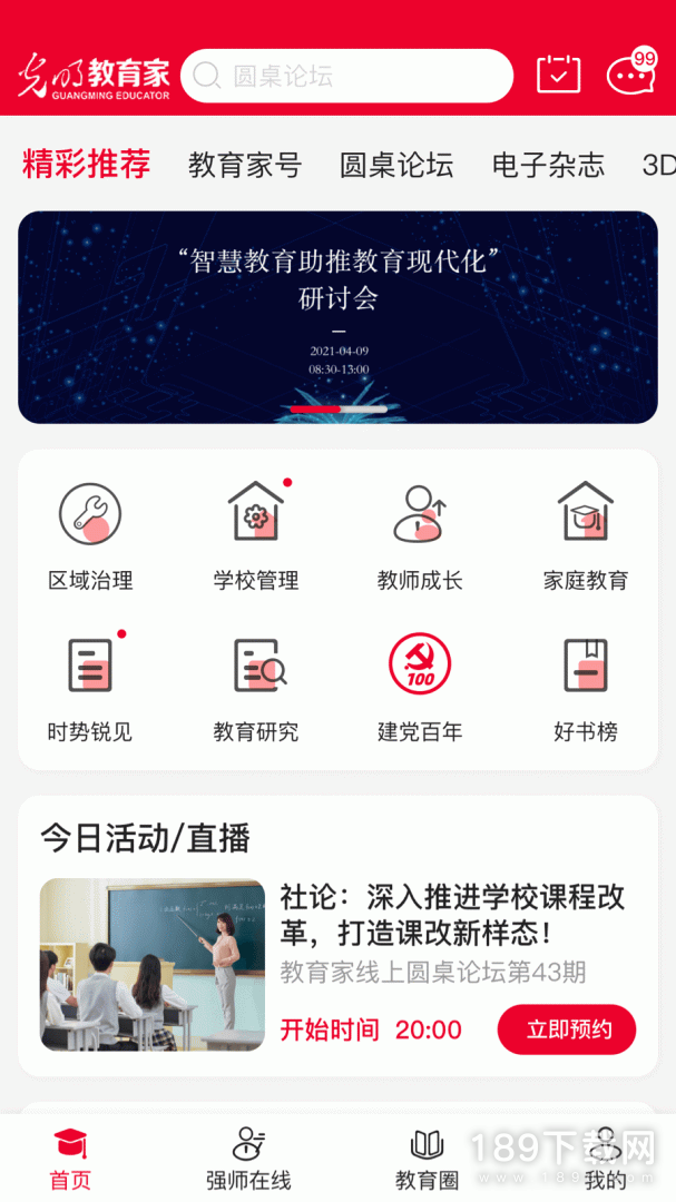 2、光明教育家下载分享给大家。传播有力量的思想,教育内容教育知识一网打尽,圆桌论坛名校校长共谈教育,专业高质量的内容入驻平台,投稿发文参与讨论探讨教育