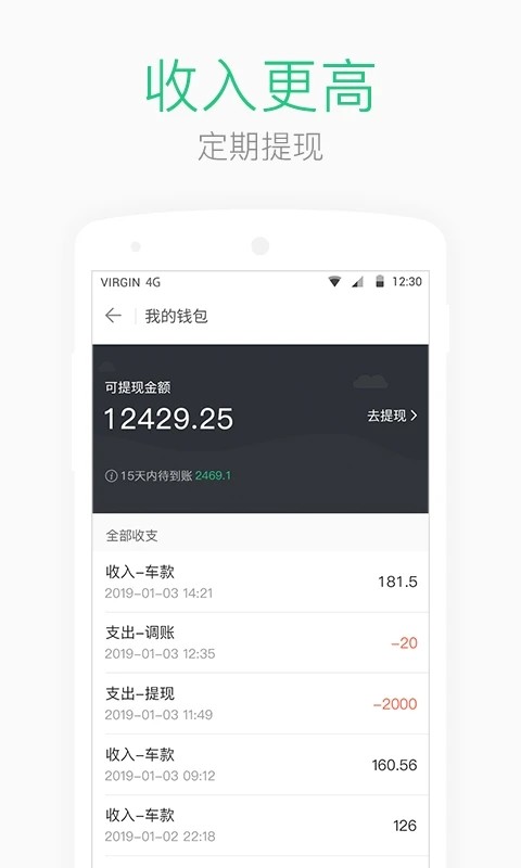 5、司机钱包,按时提现:新增司机钱包管理功能,服务有保障