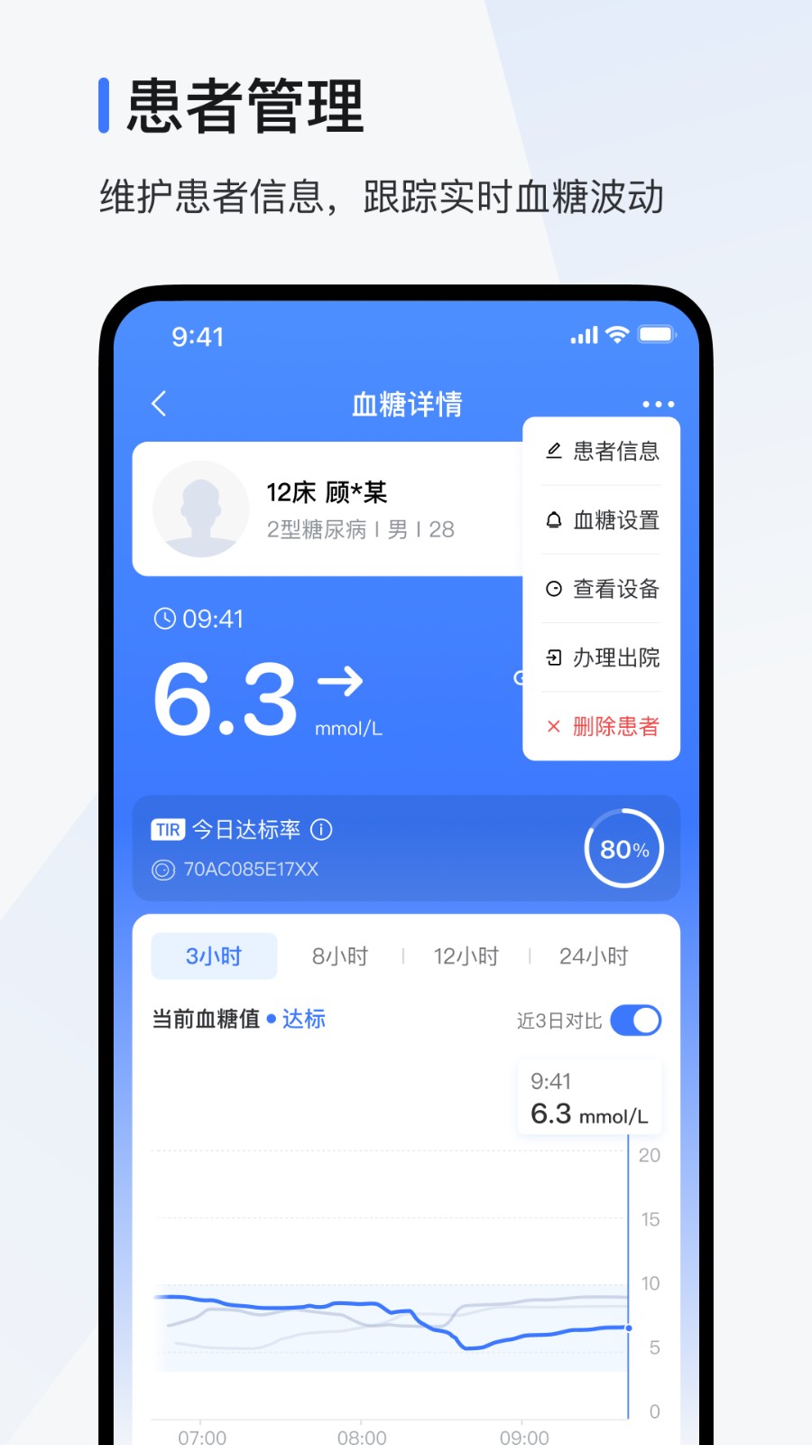 欧态医护版APP是一款面向医院、诊所等医疗机构的专业化医疗管理软件。其核心定位是解决医护人员在日常血糖管理工作中面临的三大痛点,包括患者信息分散导致的管理效率低下、实时数据缺失引发的决策滞后、以及缺乏个性化方案导致的治疗同质化。通过数字化手段,该软件将患者登记、数据监测、分析决策等环节整合至统一平台,实现血糖管理的可视化、可追溯与智能化。