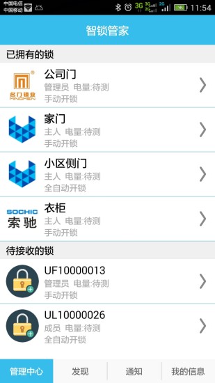 3、配对成功后,进入管理中心查看已绑定锁具及待接收的锁具邀请信息。