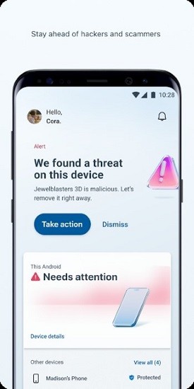1.微软官方出品,对于手机的兼容性有着独一无二的优势,只防御真正的威胁,而不会误杀善意软件。