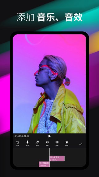 5、视频配音:闪剪辑可以为你的视频配上好听音乐,本地的也可以
