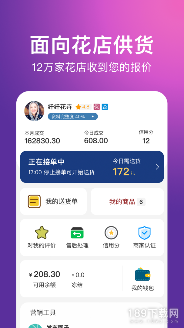 2、还在为寻找客源而苦恼?加入花伍供应商体系,每日报价即可分发到花伍的10万多家花店